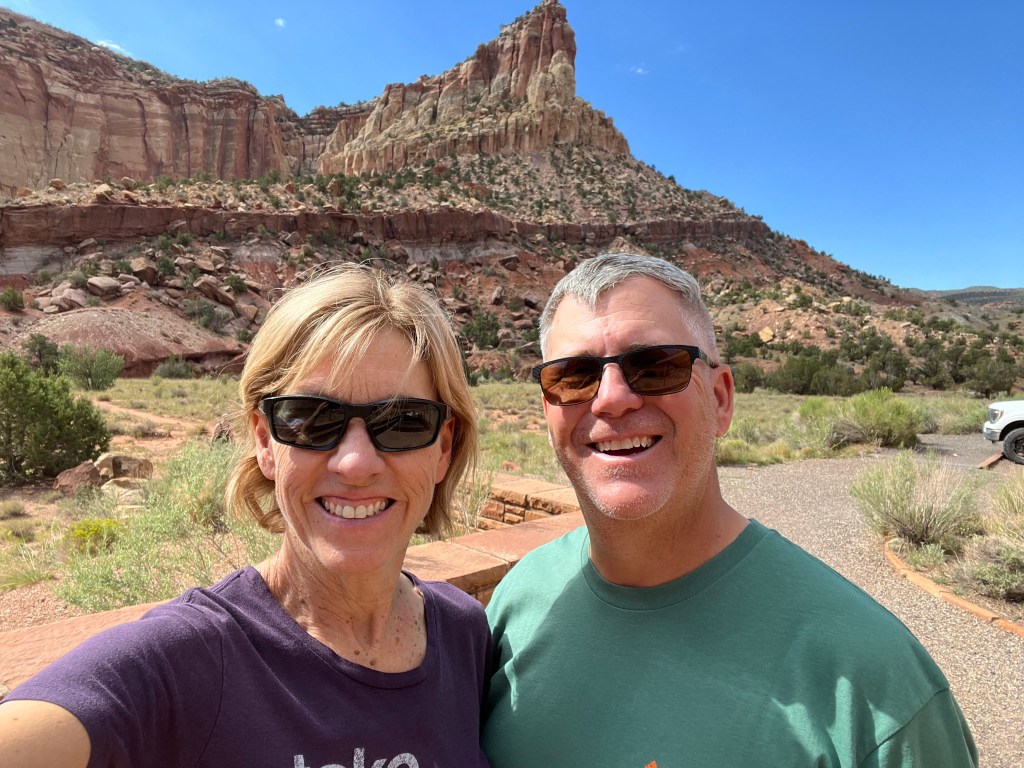 This place is like a colorful city made of rock. It had layers and texture and so much personality. As Dan says it was majestic! we are true RVers now. We had our first malfunction. Levelers decided to malfunction. Dan asked a fellow RVer and they worked on it a good hour. Dan removed the leveler that stayed down so we could proceed. A HOT night but who can complain we woke up in the middle of a beautiful painting!