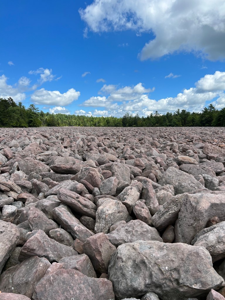 One of the recommended sites to see in this area is Boulder Field. We rode our bikes to the site to better understand what all the fuss was about. At first glance it is a field of boulders but when you read about how it came about it is remarkable. The bottom line is that it was once a bedrock and it turned into boulders. It spans 16 acres. A glacier stopped a mile north of it and because of the nearby temperature, water and location it helped to form this unique landscape. As the literatures states: it is a landscape frozen in time- a relic of the ice age. Nature has a way of showing us about life. No matter how grounded we are, there will always be something that forces us to change, especially with enough pressure over time. Perhaps rather than resist the change we should look forward to the next transformation it has in store for us.