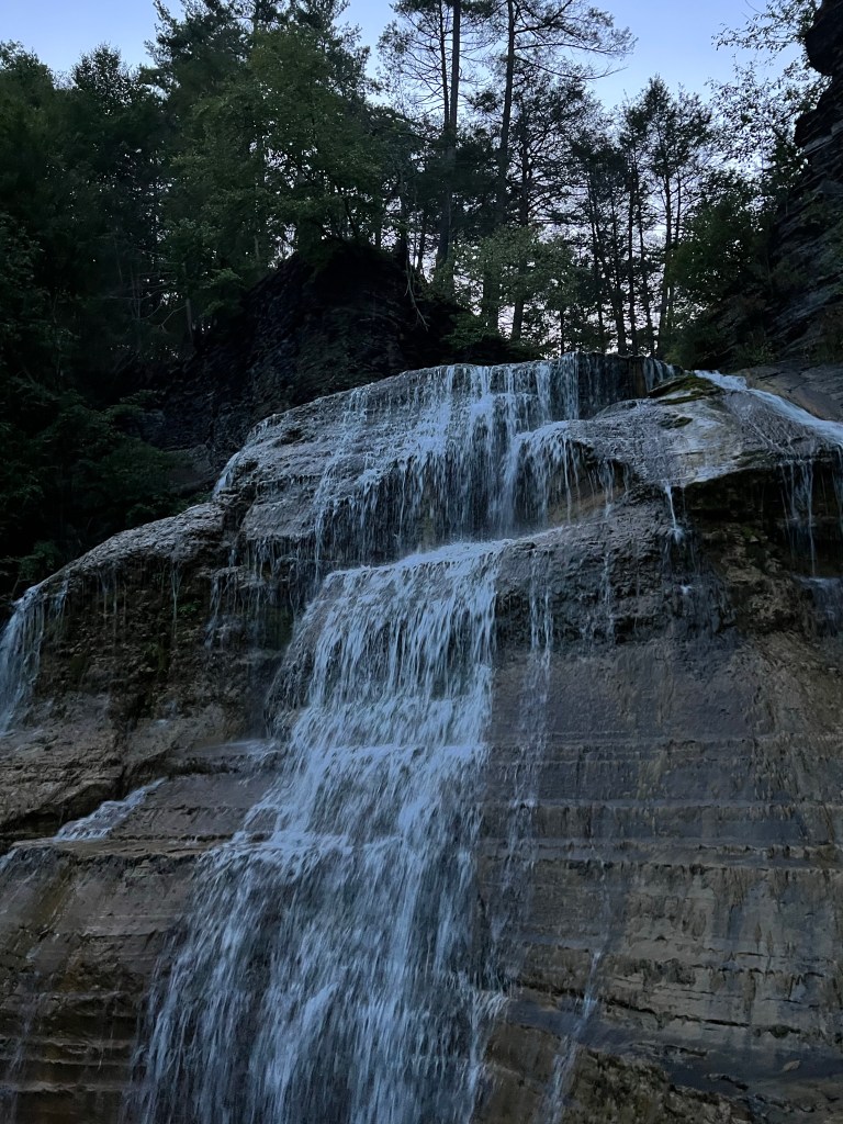 On the move again. On our way out of Hickory Run State Park we stopped to hike to Hawk Falls. One of many waterfalls we will see in the next few days. Ithaca, New York is known for its waterfalls. I am discovering the roads here in the East are narrow and often run through small towns, each town has its own uniqueness. Ithaca is also home to Cornell University. We saw lots of college students walking around town as we drove through. Our next campground is Robert Treman State Park. Our spot is full of trees and nice neighboring campers. We were able to walk to the lower waterfalls and see the natural swimming pool before tucking in for the night.