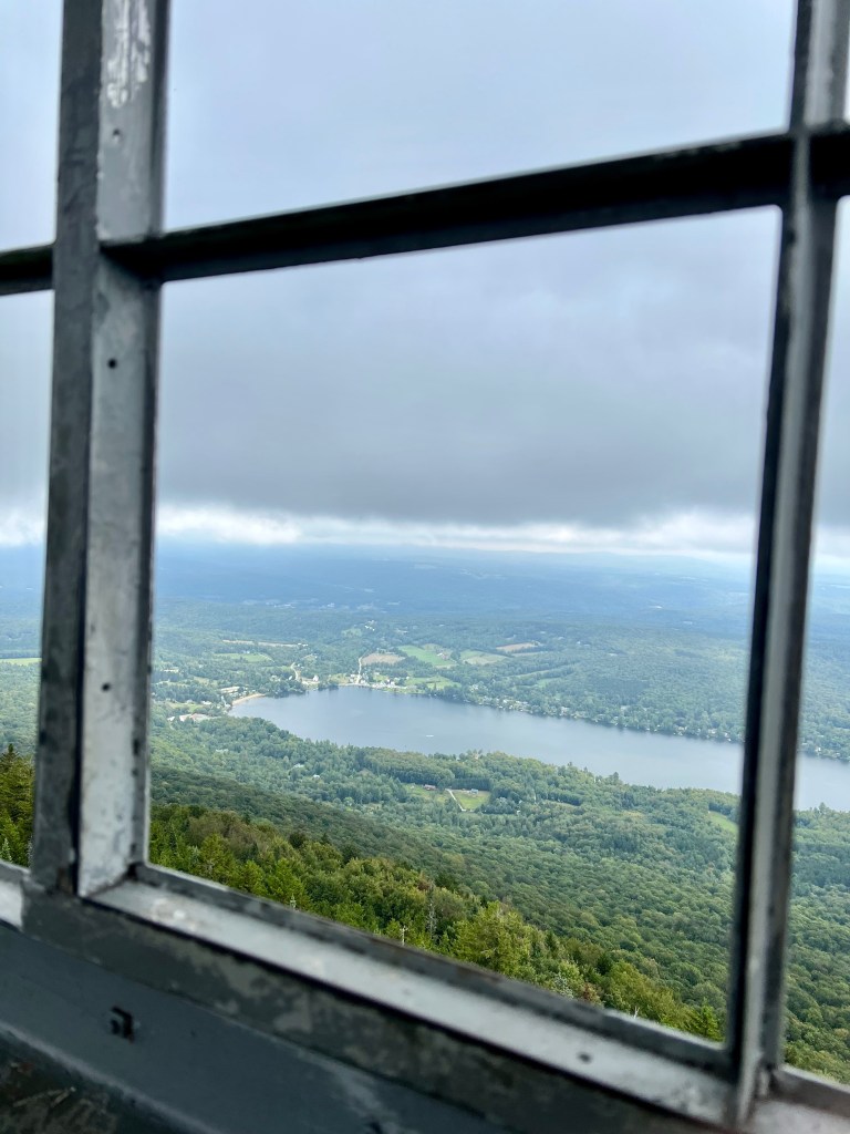 We are averaging 15,000 steps a day on this trip. We normally take a lot of walks throughout the day to take in the sights and entertain ourselves. Today we did a hard hike up Elmore Mountain. The elevation gain was about 1500 feet. It was more challenging coming down. Lots of roots to navigate and rocks to step up or down on we saw some color in the leaves, a beaver damn, and amazing views. We climbed up a fire tower and we’re at the tree line. Beautiful and rewarding!