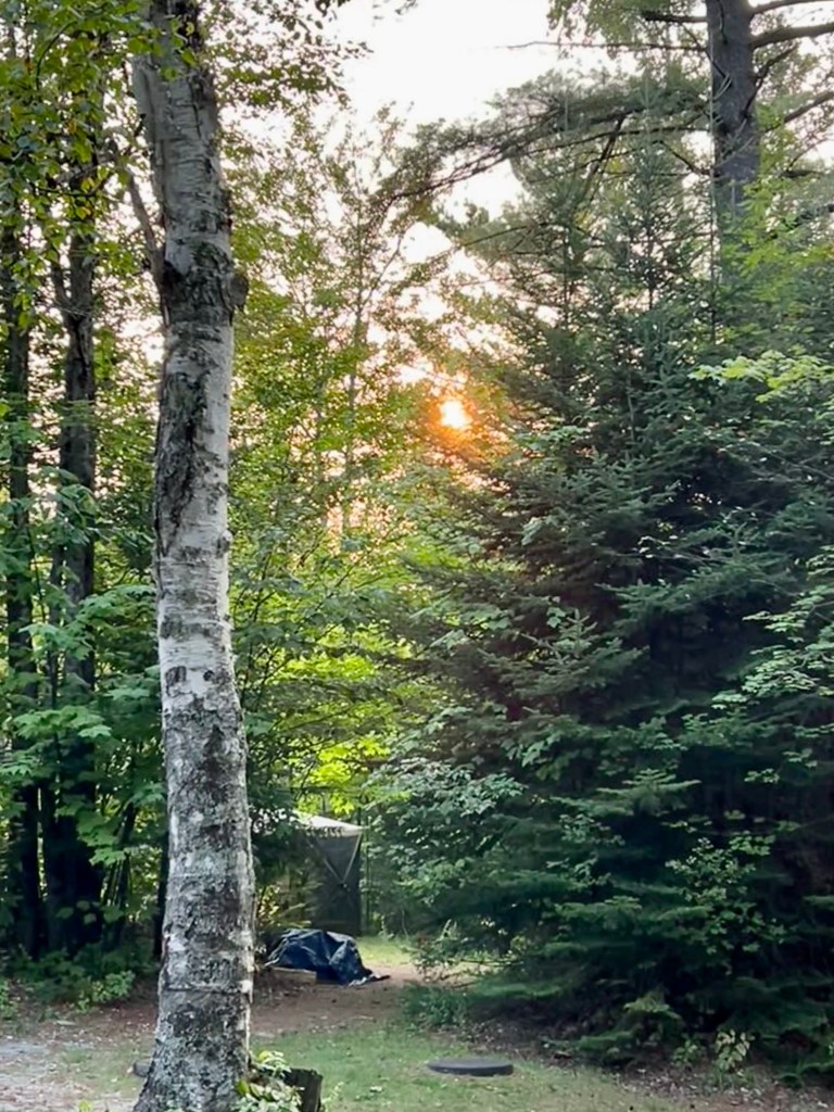 On the way to our next campground we had business to take care of. Our RV bed was not meant to be slept in for 78 days in a row. We found a compatible mattress to buy, not an easy task since we needed a 10 inch mattress. Did laundry again, not a fun task but we cannot retire from the mundane tasks of living. Ricker Pond Is the size of our Prescott lakes. It is calm and still and peaceful. We found a gap in the trees to take a peek at the beautiful full moon. We are engulfed in trees and mountains so no cell service here. It will be good to let go of that distraction.