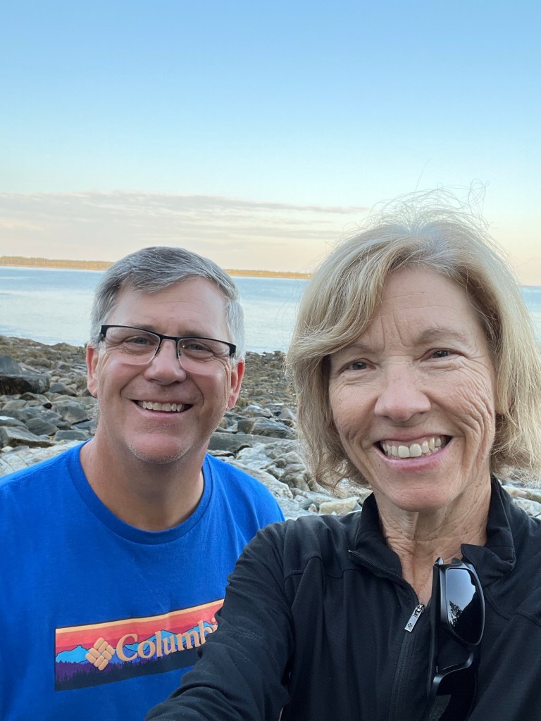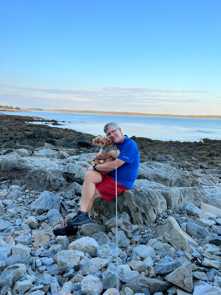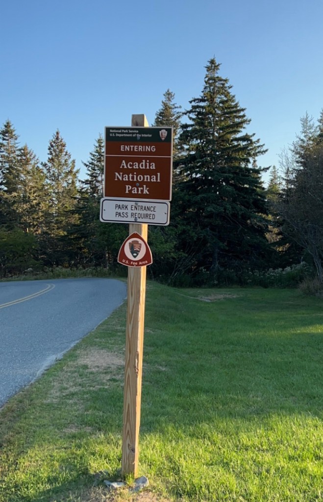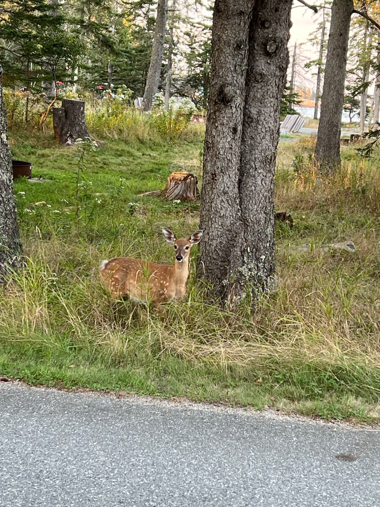 2,925 miles away from home – we finally made it to Acadia National Park in Maine. Long drive from New Hampshire but made it in time for Stewies supper. We are staying at the Seawall campground which is just across from the sea wall beach. On our walk there we came across numerous deer, who behave like pets. They are no way fearful of humans or even cars. I guess they are the product of generations of deer who have not been hunted or harmed by us. Excited to take advantage of the free shuttle system tomorrow to check out what the park has to offer