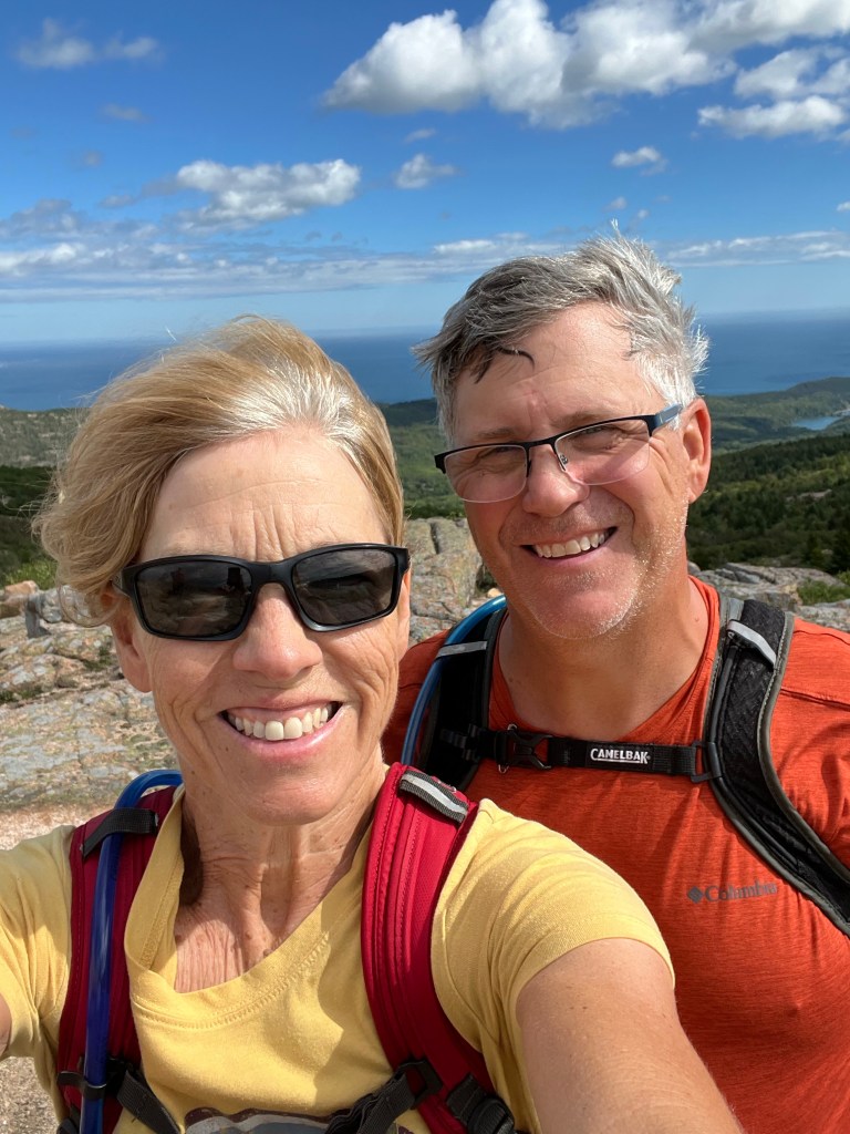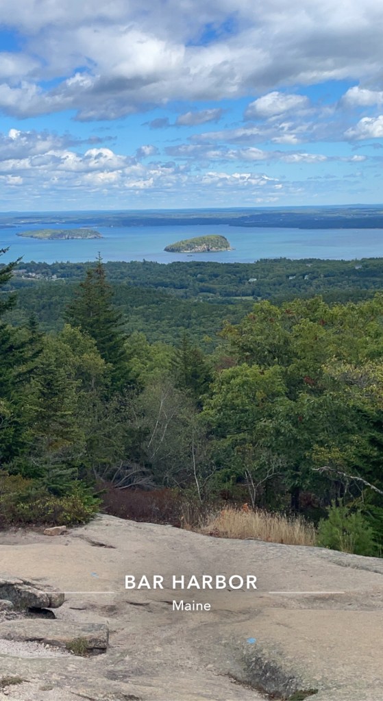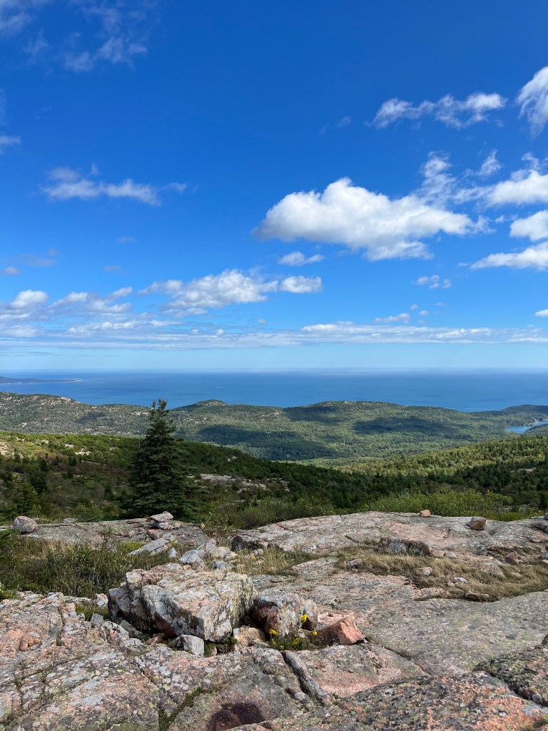 Cadillac Mountain hike today. 6.8 miles. 1400 ft elevation gain = 104 flights of stairs! The payoff was a 360 view of Acadia National Park! We caught the shuttle in time to get into town for authentic fish and chips and a cold blueberry beer.